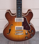 An Eastman T185MX semi hollowbody electric guitar in the goldburst finish. Built in 2023, this guitar is in excellent condition with no cosmetic issues and includes a hardcase.
