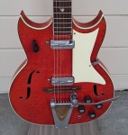 Truetone Red Devil Speed Demon 1960s electric guitar with Bigsby—vintage style, rich tones, and unique design. Perfect for collectors and musicians seeking retro flair and exceptional sound.